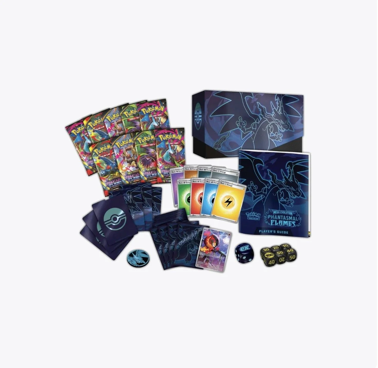 The Pokémon TCG: Mega Evolution-Phantasmal Flames Elite Trainer Box includes: